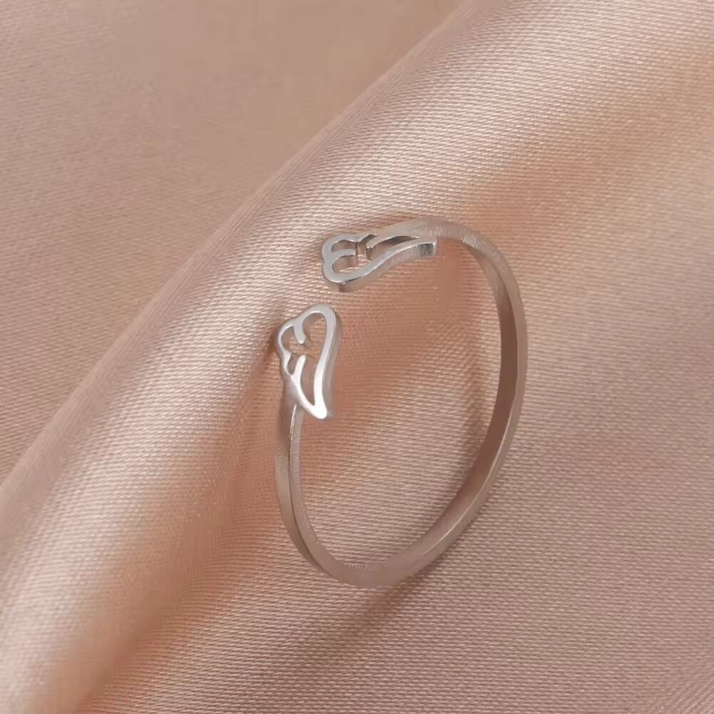 ハートと羽をかたどった、遊び心あふれるオープンリング。