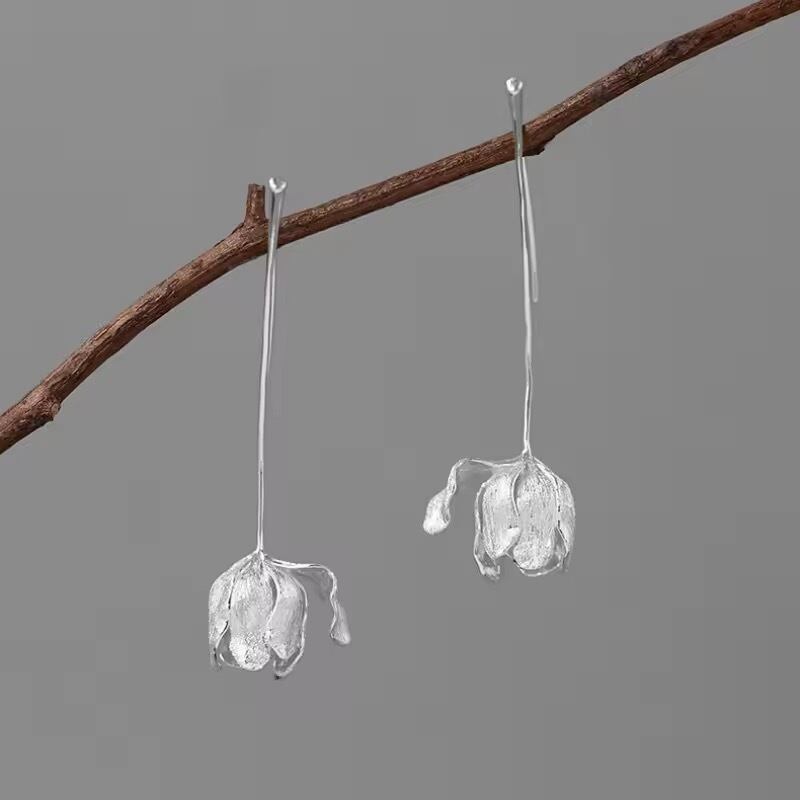 自然の造形美をそのまま閉じ込めたような、繊細なメタルピアスです。