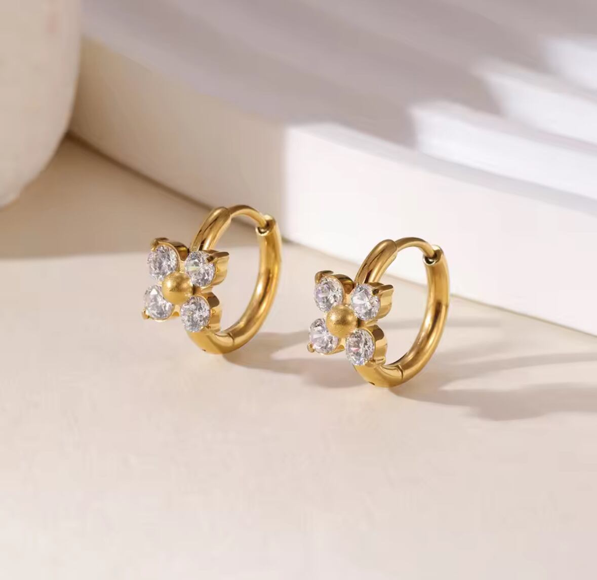 キラめく花びらが耳元でそっと輝く、可憐なフラワーモチーフのフープピアス。