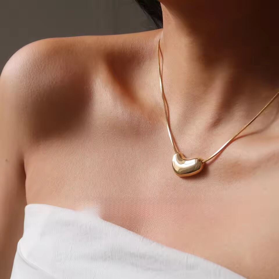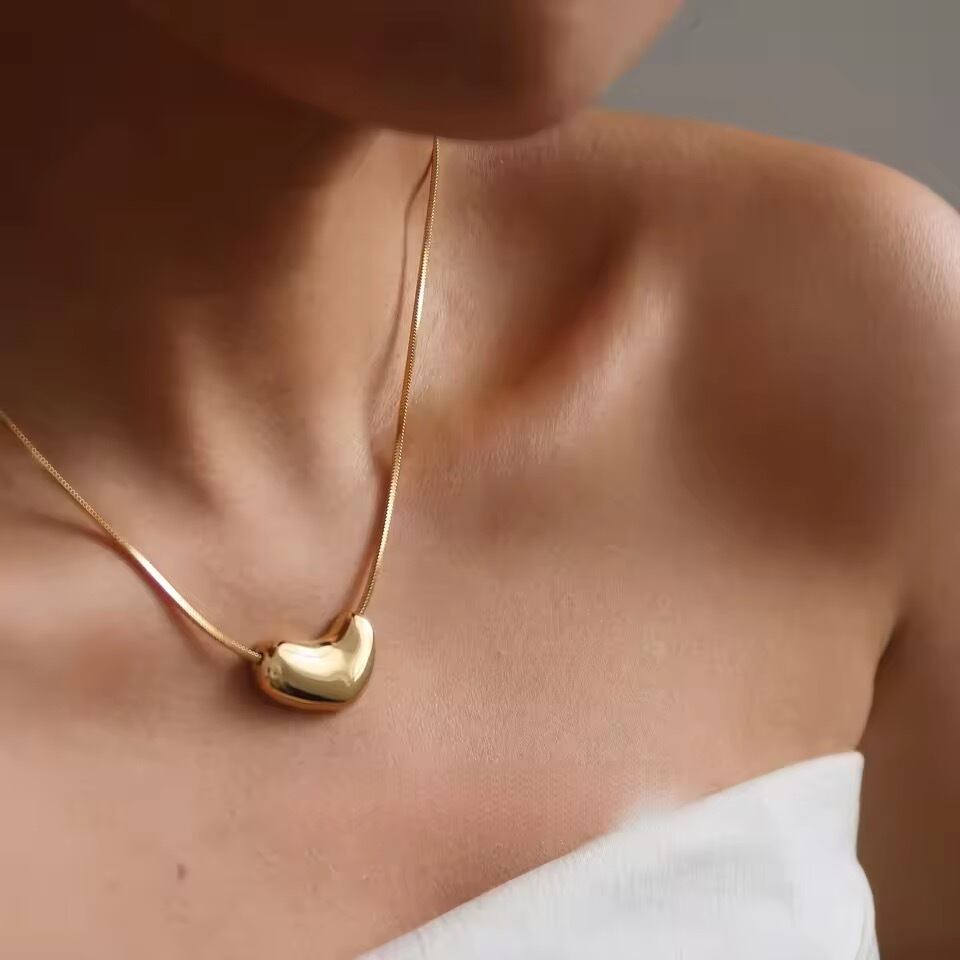 金アレ対応 ぷっくりハートメタルネックレス(01061)