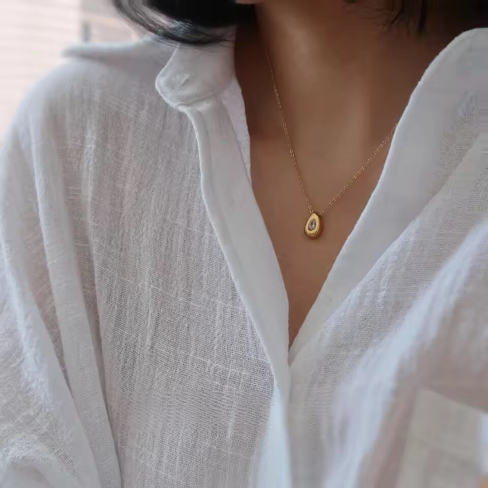 さりげなく光る小さなストーンが、首元に上品なアクセント。