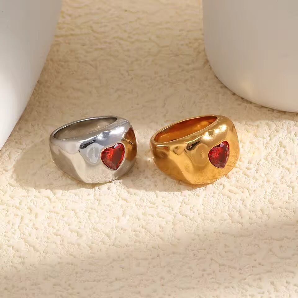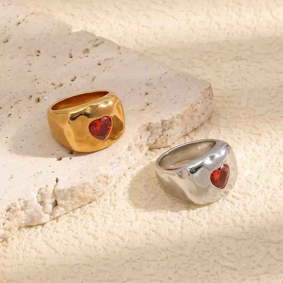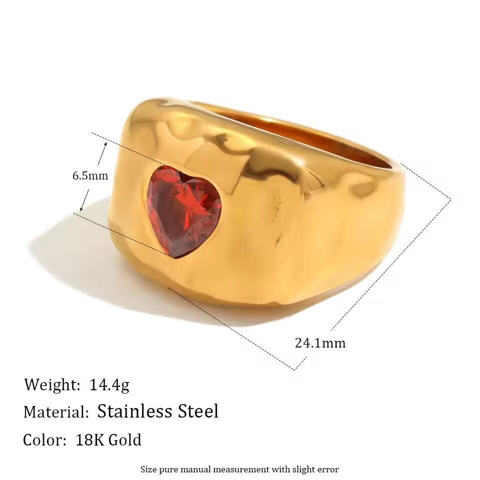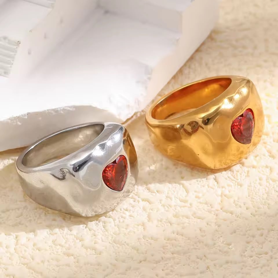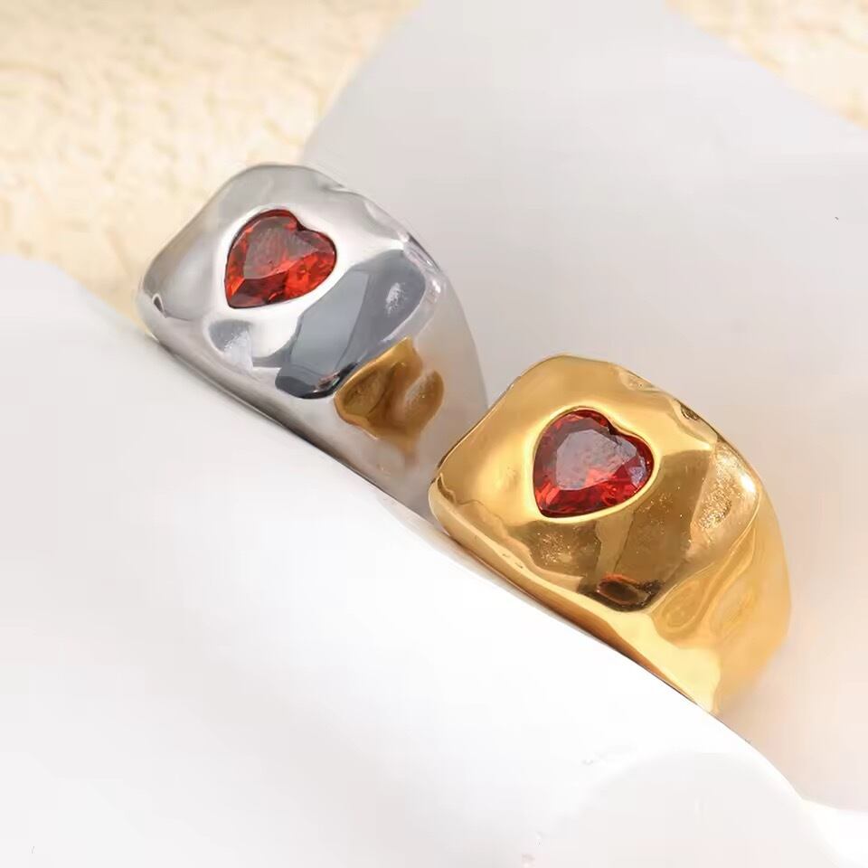 金アレ対応 ハートストーン ボリュームリング(01065)