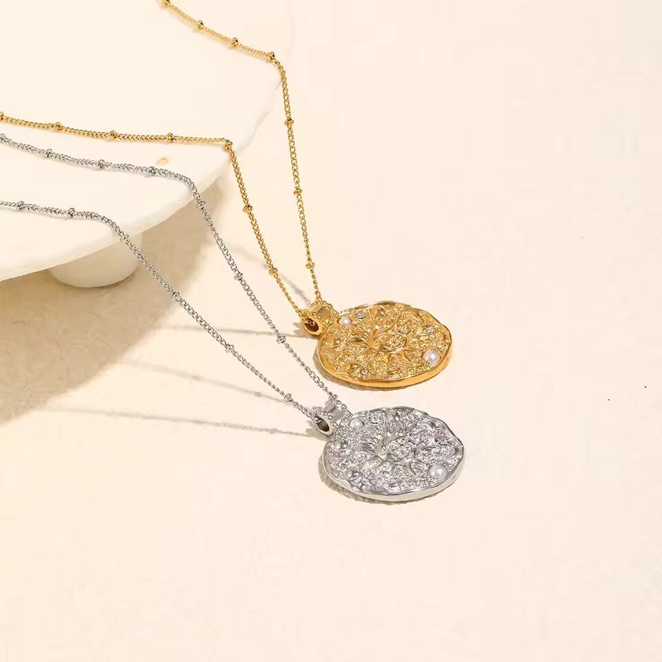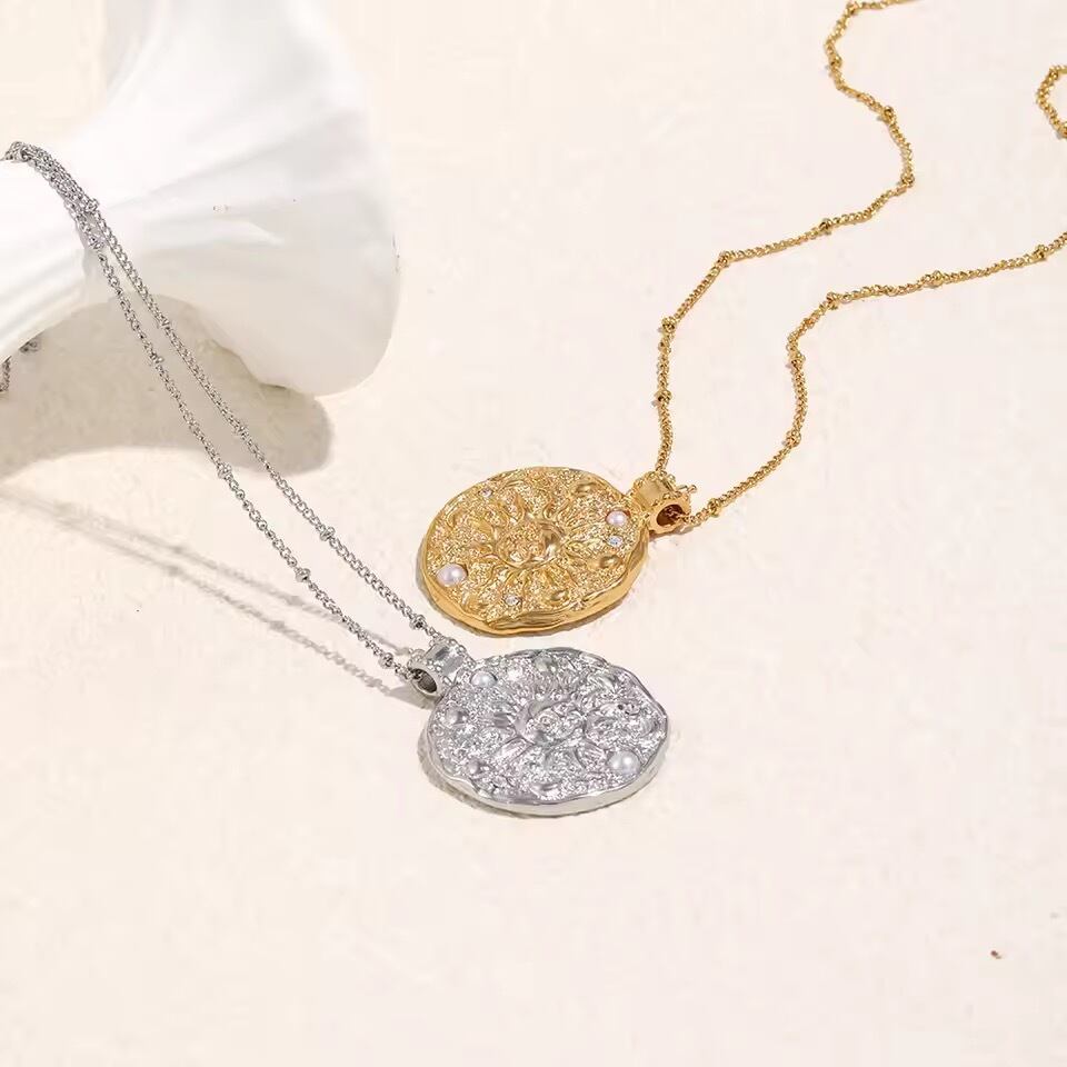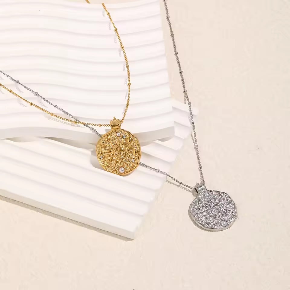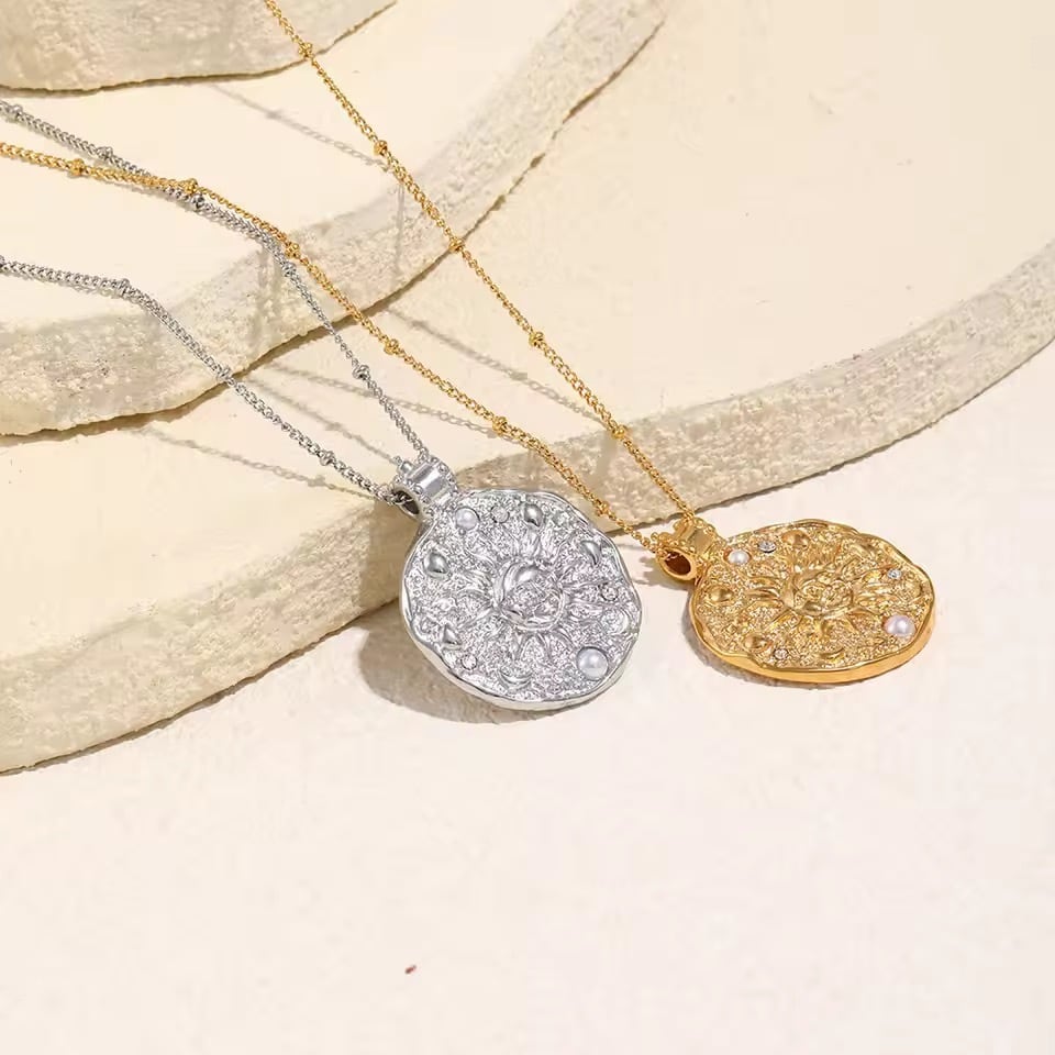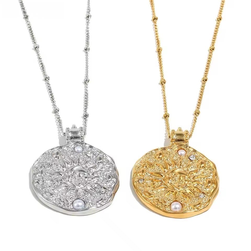 金アレ対応 アンティークサンモチーフネックレス(01066)