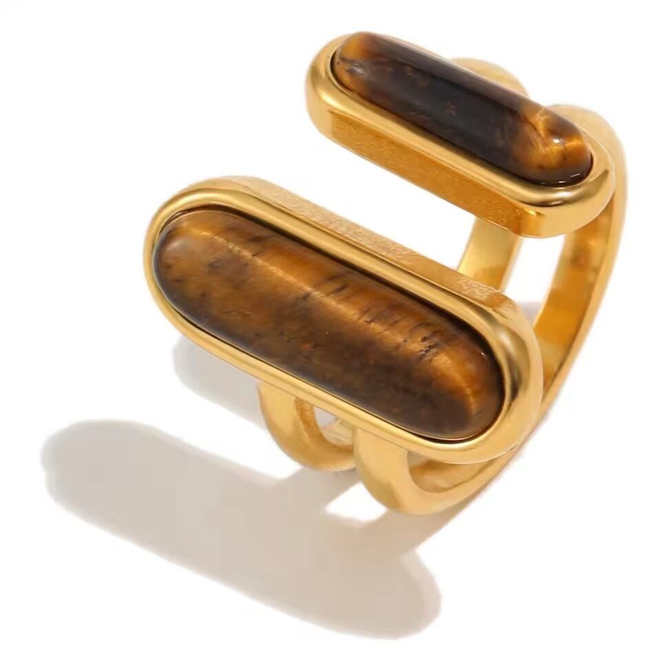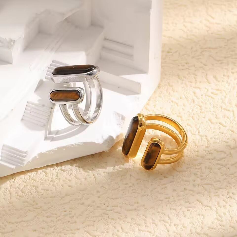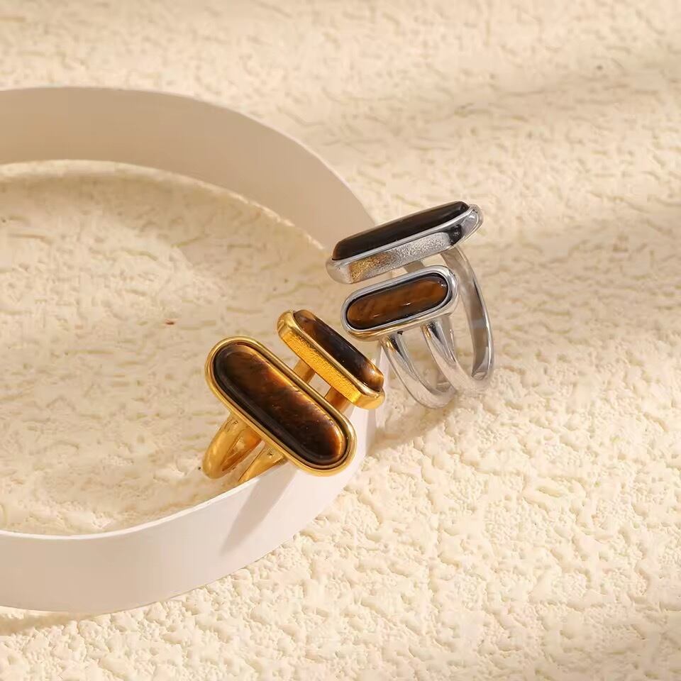 金アレ対応 ブラウンストーンダブルラインオープンリング(01068)