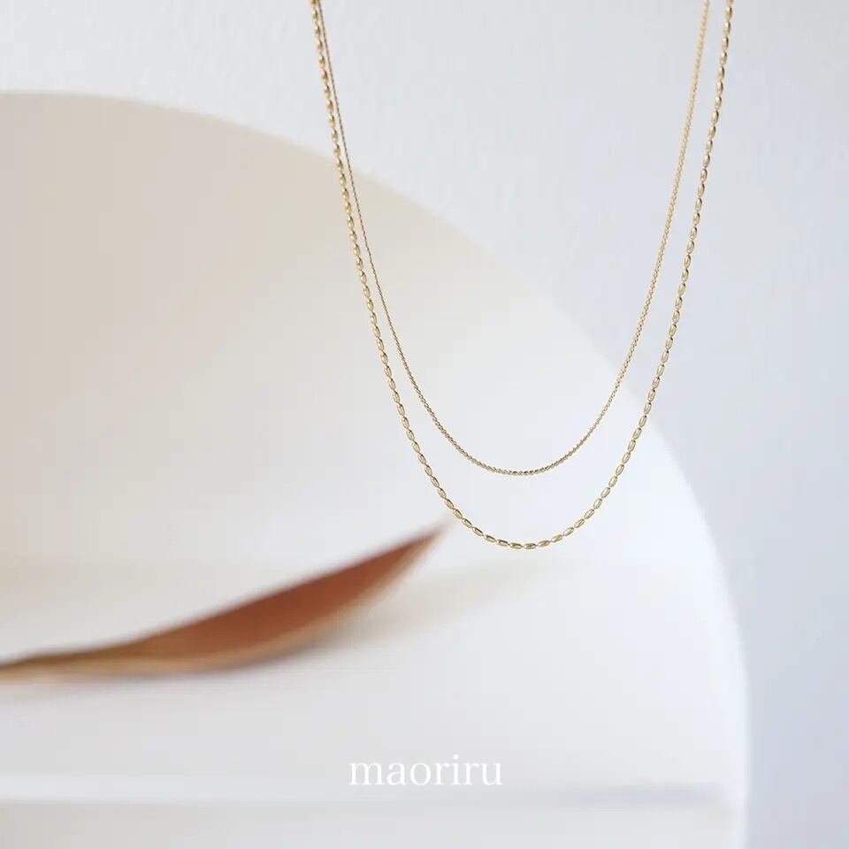金アレ対応 316L 18k 2連ゴールドネックレス (032)