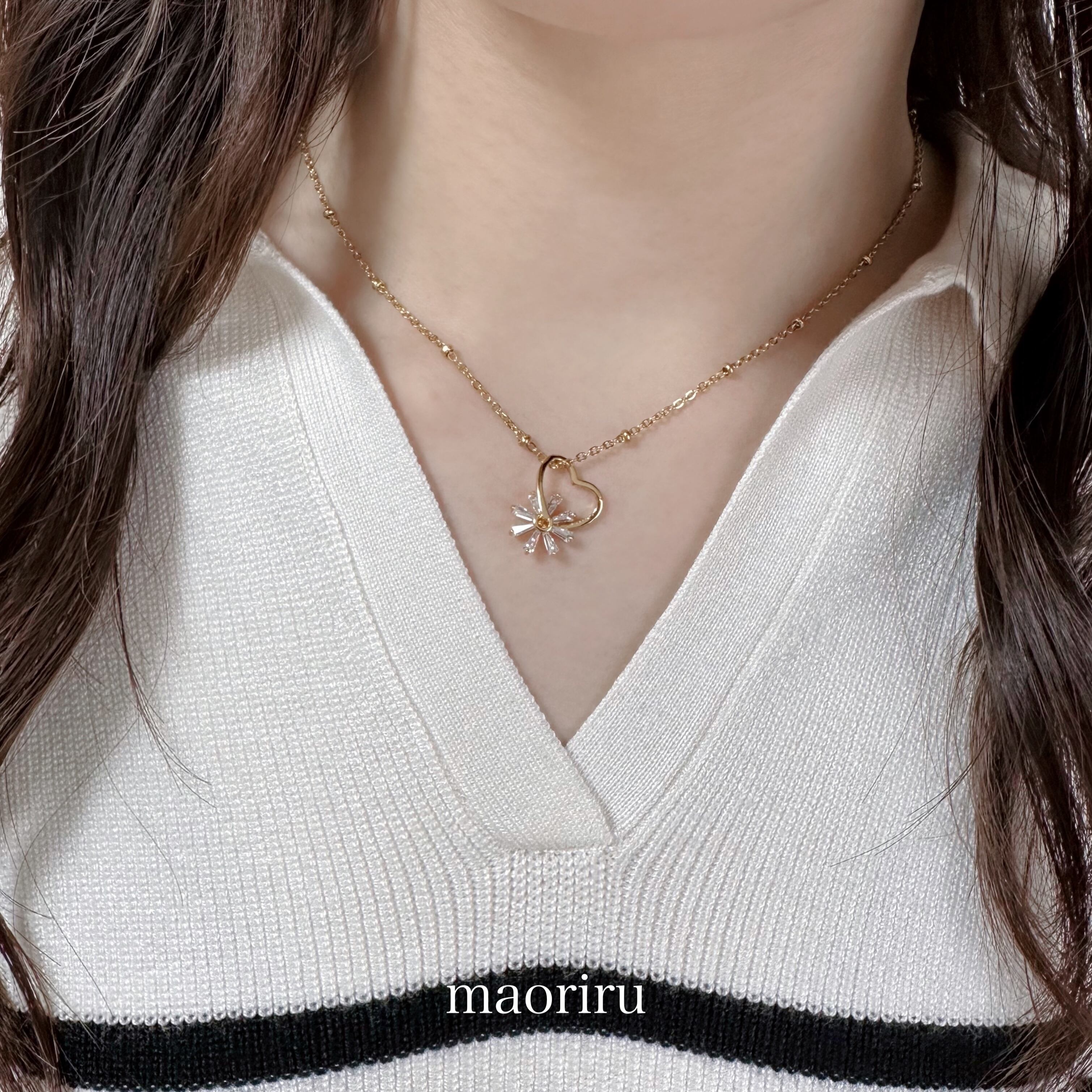 金アレ対応 フラワーハート ネックレス (0111)