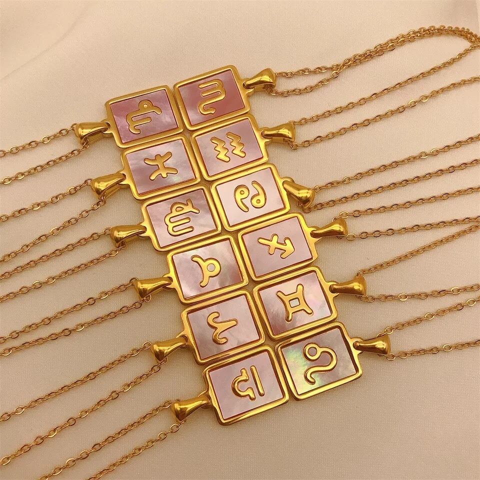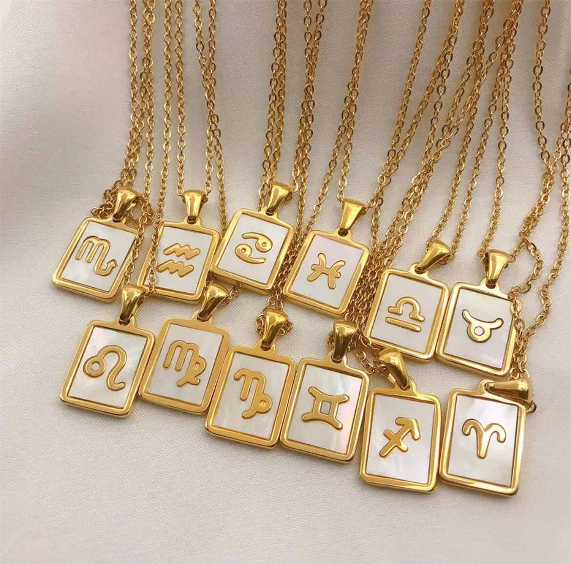 金アレ対応 12星座スクエアペンダント ネックレス (0118)