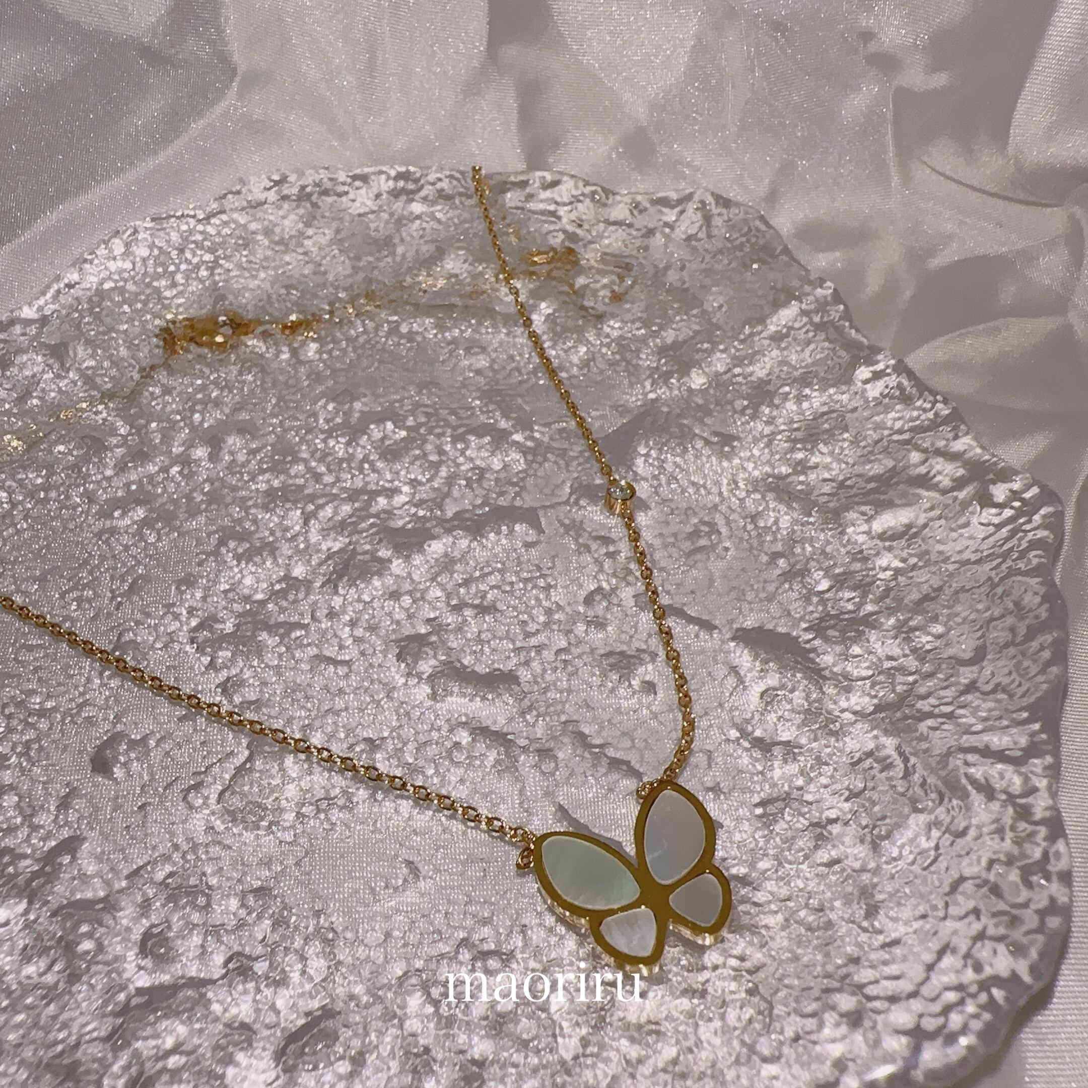 金アレ対応 316L ジルコニアバタフライネックレス (0168)