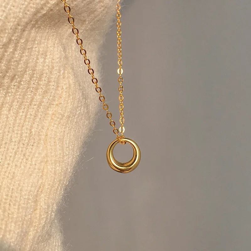 金アレ対応 316L 華奢見せ、ドーナツネックレス (0174)
