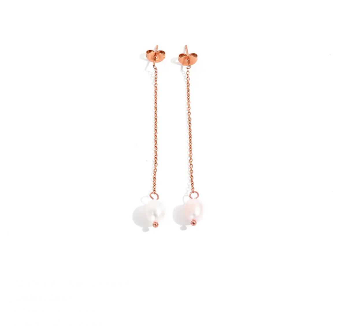 揺れるたびにやさしく艶めく、淡水パールのチェーンピアス。