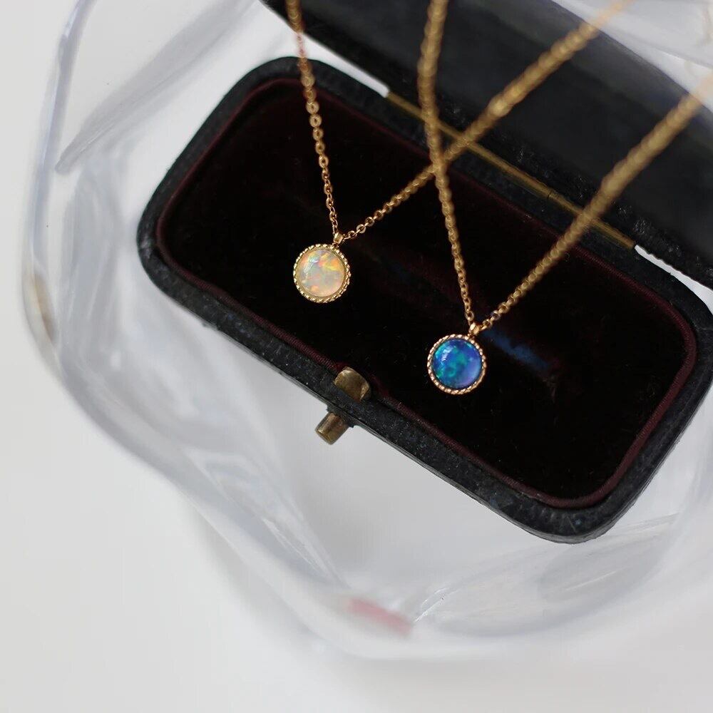 金アレ対応 Synthetic Opal Gold Necklace (0377)