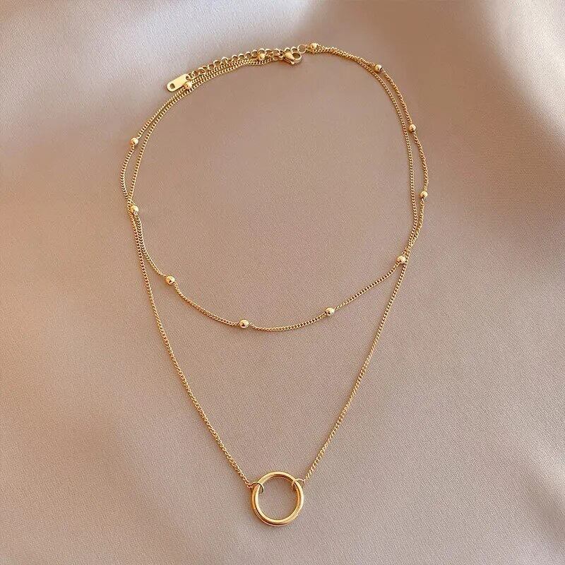 金アレ対応 サークルモチーフ2連ネックレス (0446)