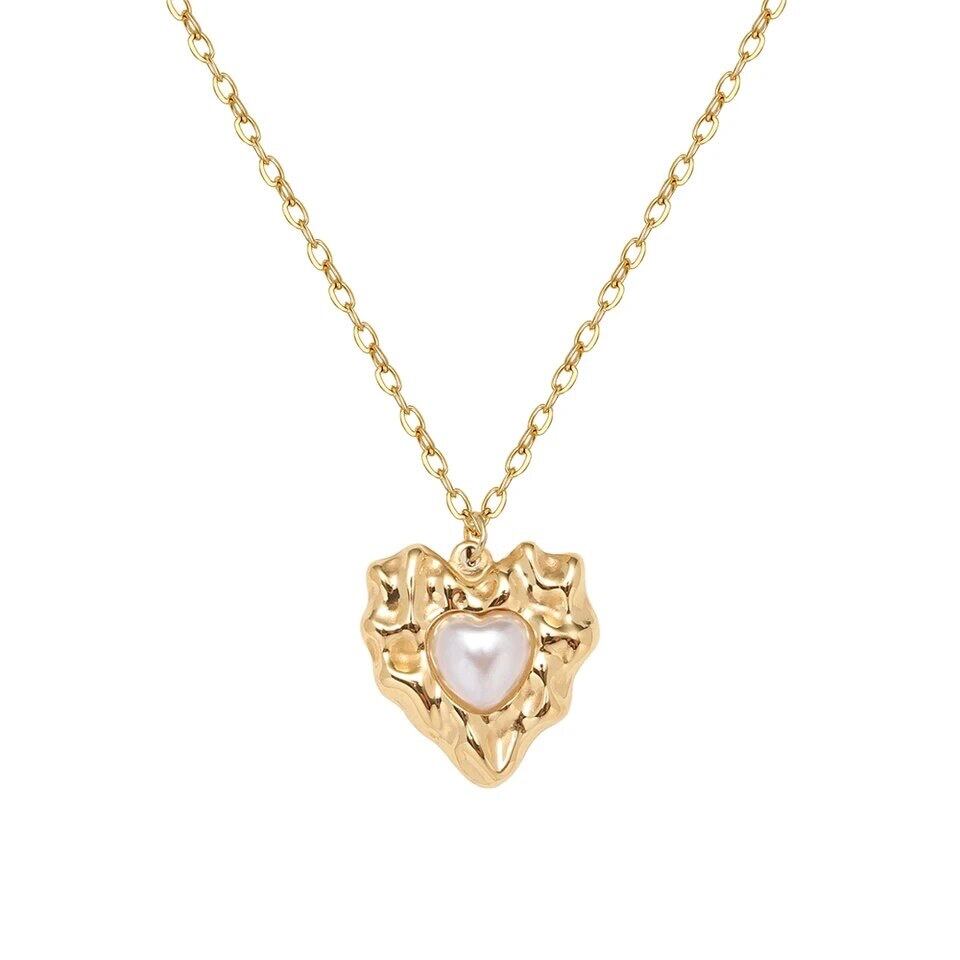 アンティーク調のゴールドに、パールハートが可憐に映える主役ネックレス。