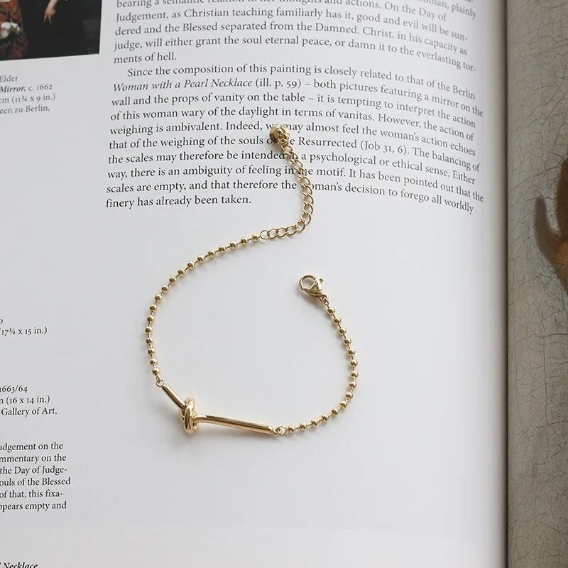 金アレ対応 316L 18k 幸せを願う、結び目ブレスレット (0599)