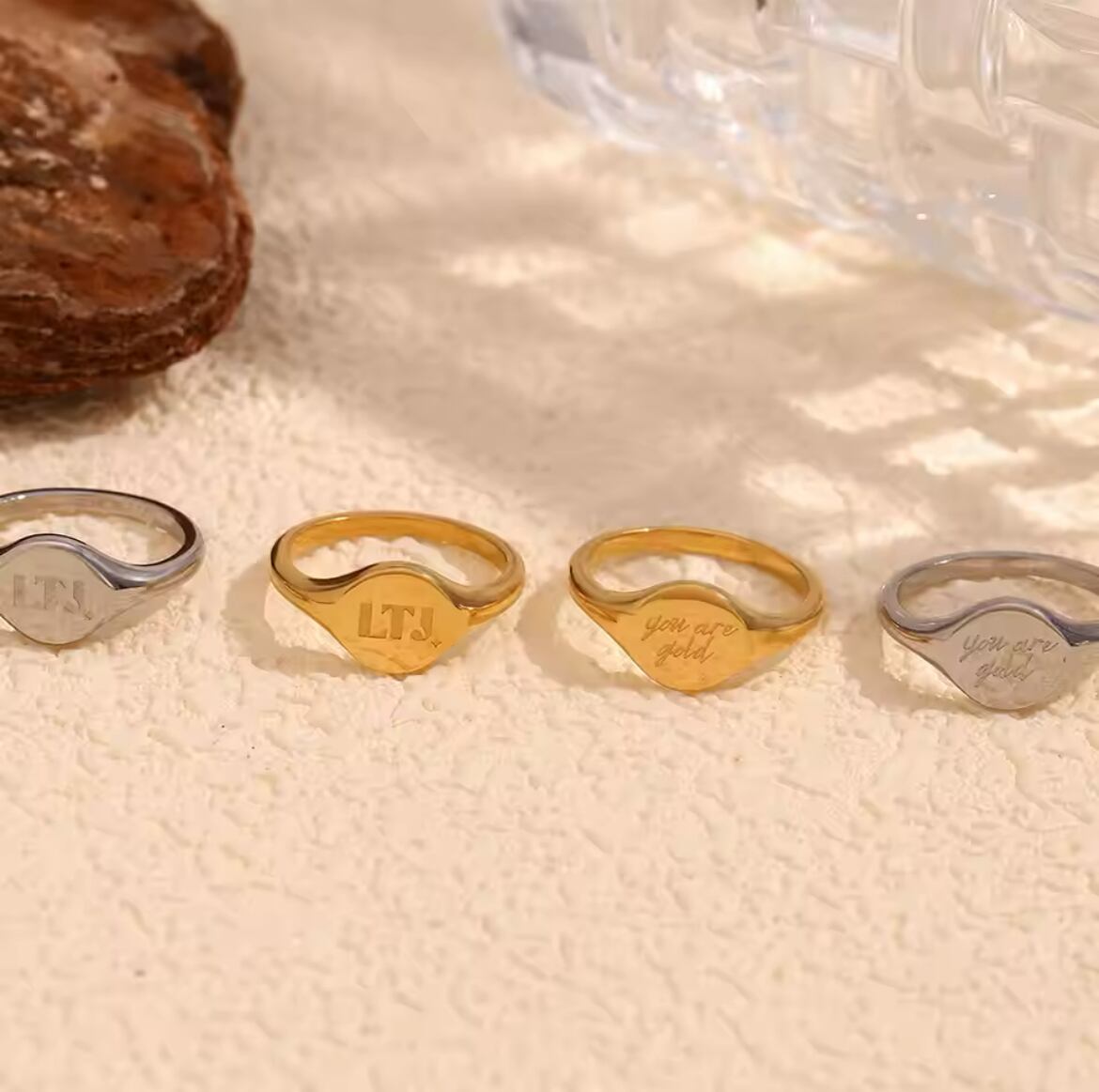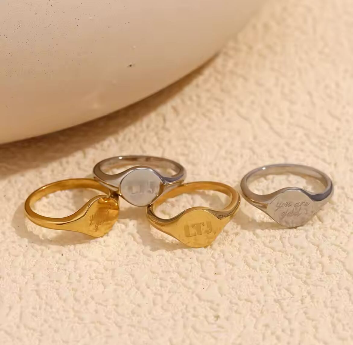 金アレ対応 316L 18k 英語ラウンドリング(0645)
