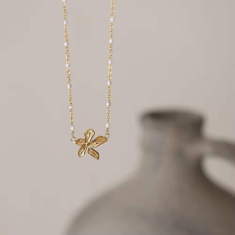 金アレ対応 ミニビーズ×チェーンのフラワーネックレス(0654)