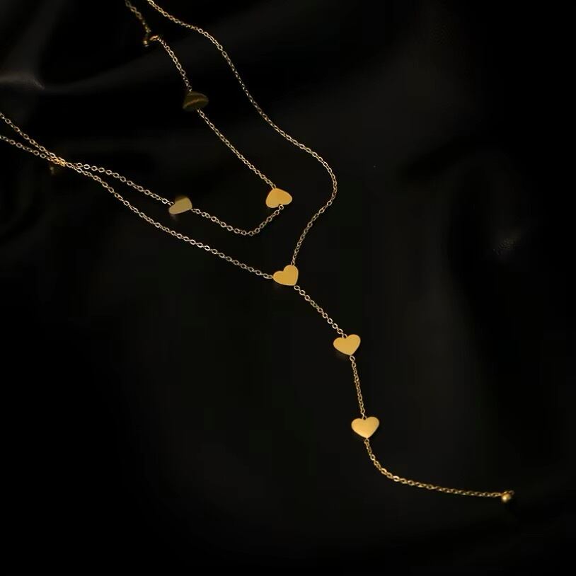 華奢なハートが連なる、大人可愛いYラインネックレス。