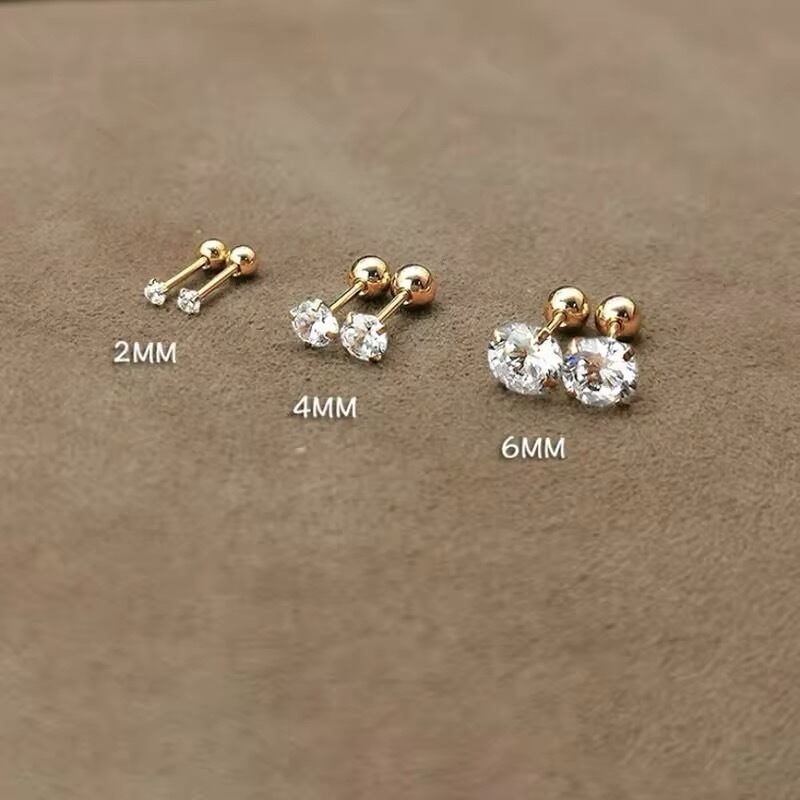 金アレ対応 色々なサイズのシンプルストーンピアス(0791)