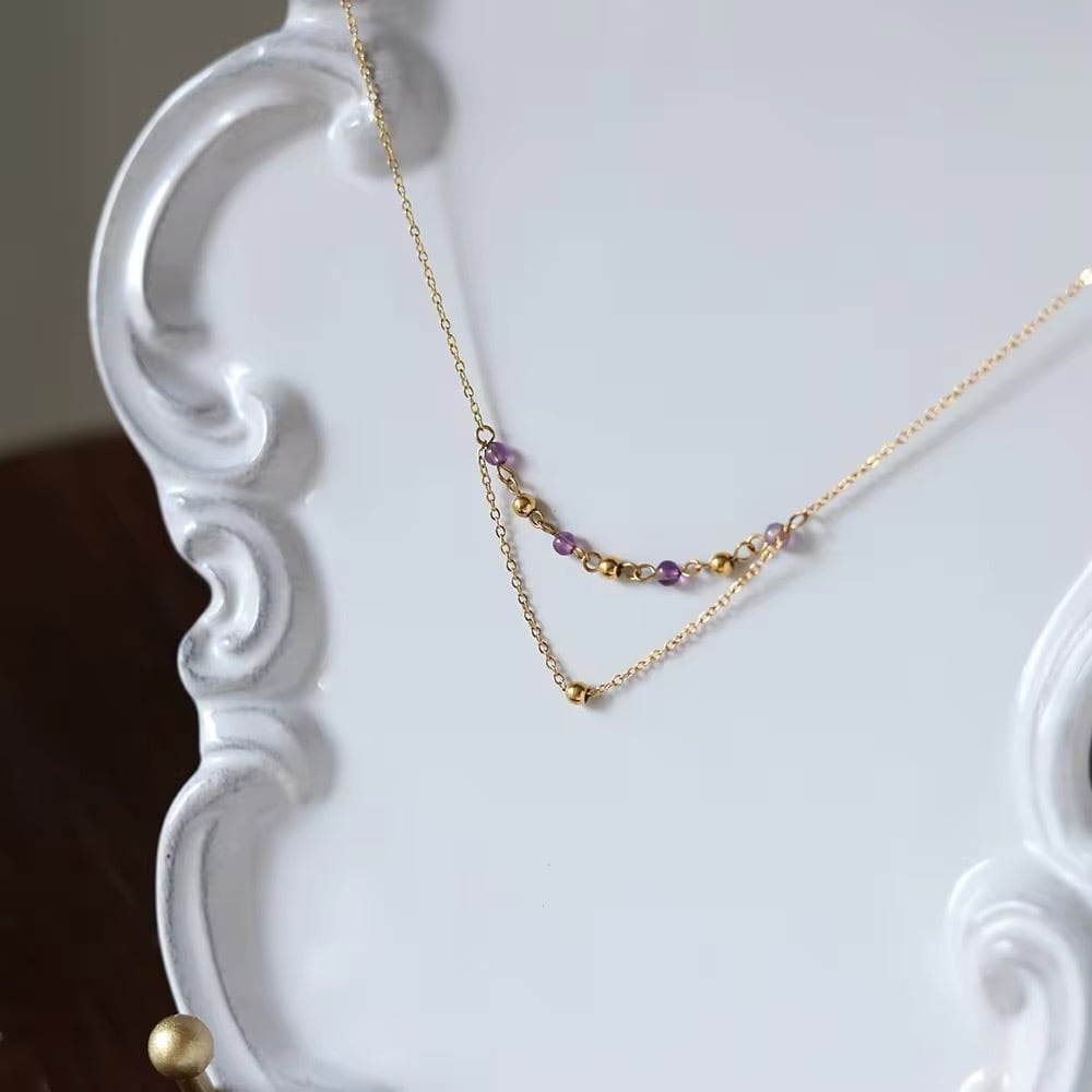 金アレ対応 シンプルストーンレイヤー風ネックレス(0796)