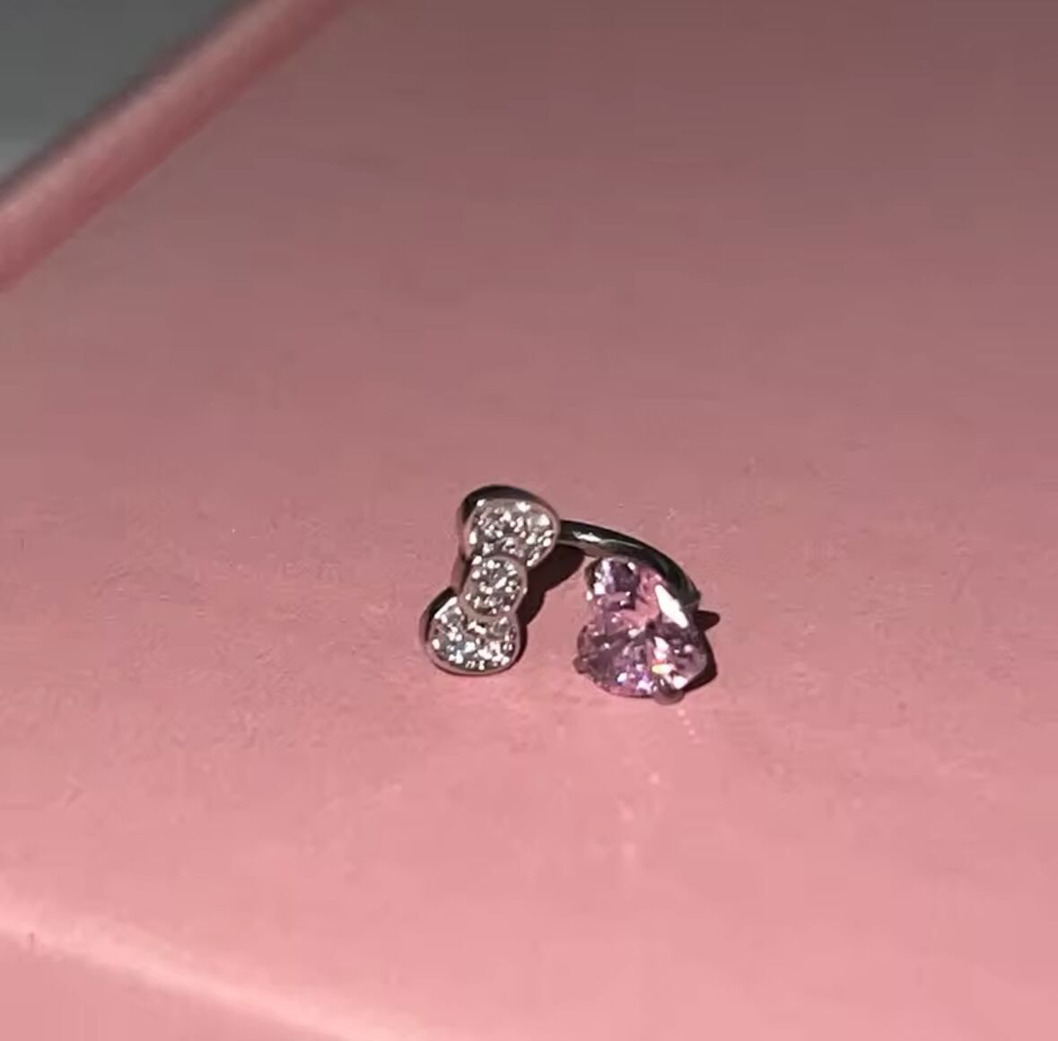 キラキラのリボン×ハートのストーンで、耳元に甘さと輝きをひとさじ。